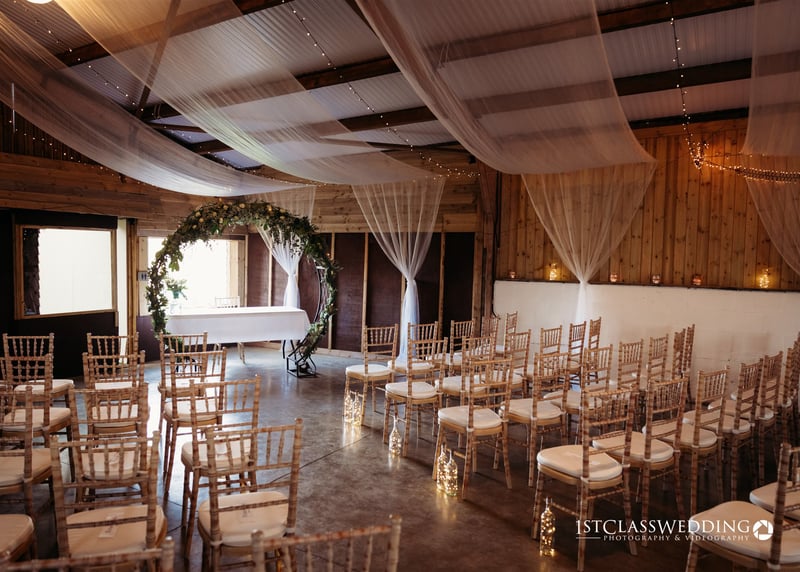 Timber frames, exposed stonework and open-plan layouts create reception spaces that feel atmospheric without heavy styling. Many barn venues also offer outdoor ceremony areas, making them a strong fit for couples who want flexibility between indoor and alfresco elements.