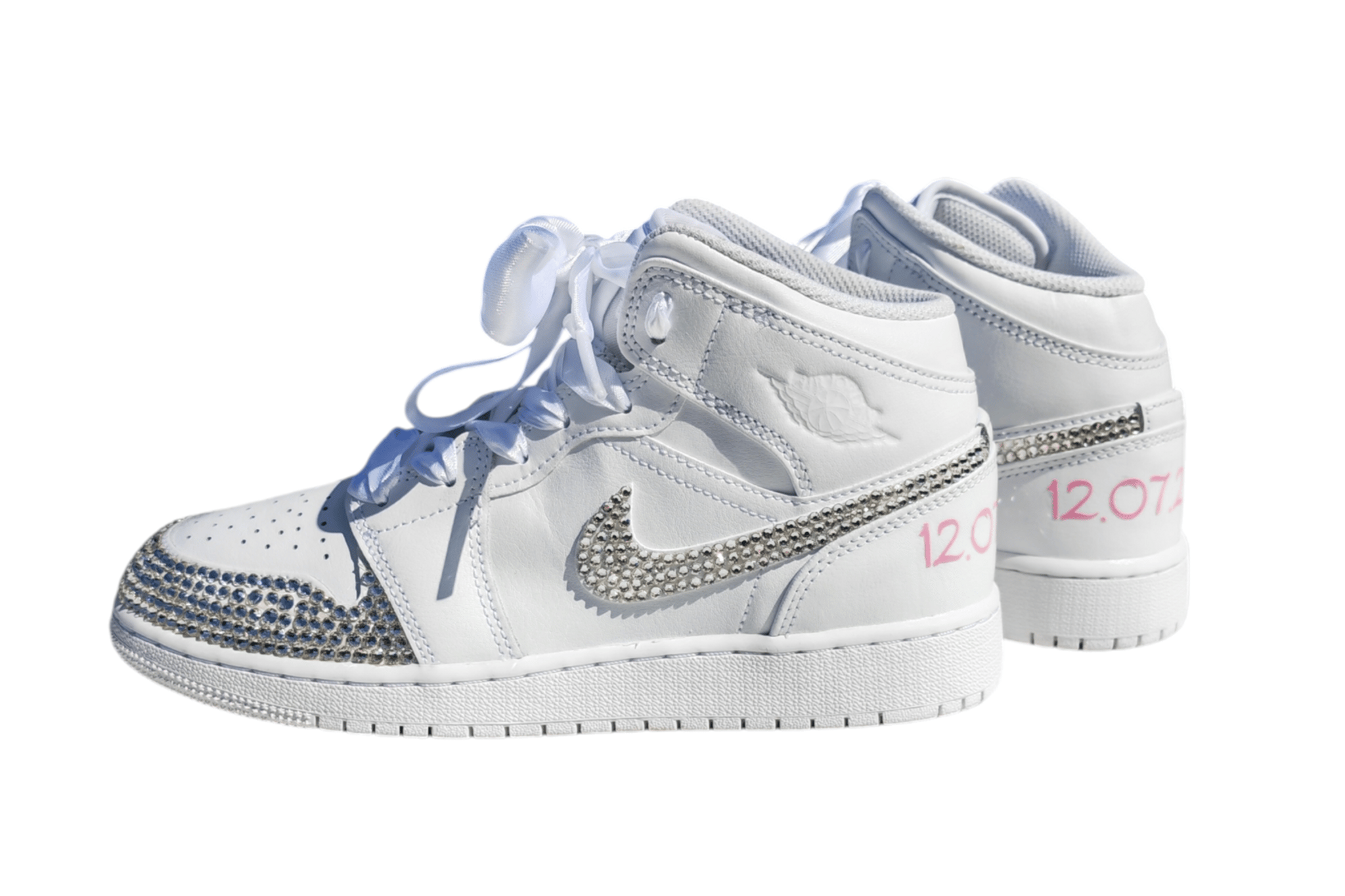 I once added the softest of quality feathers in pink, purple and green to match a Bride"s dress which had an underskirt made with lots of colourful nets The bride is a singer and we themed her shoes as a songbird and also added music notes using Swarovski crystals.