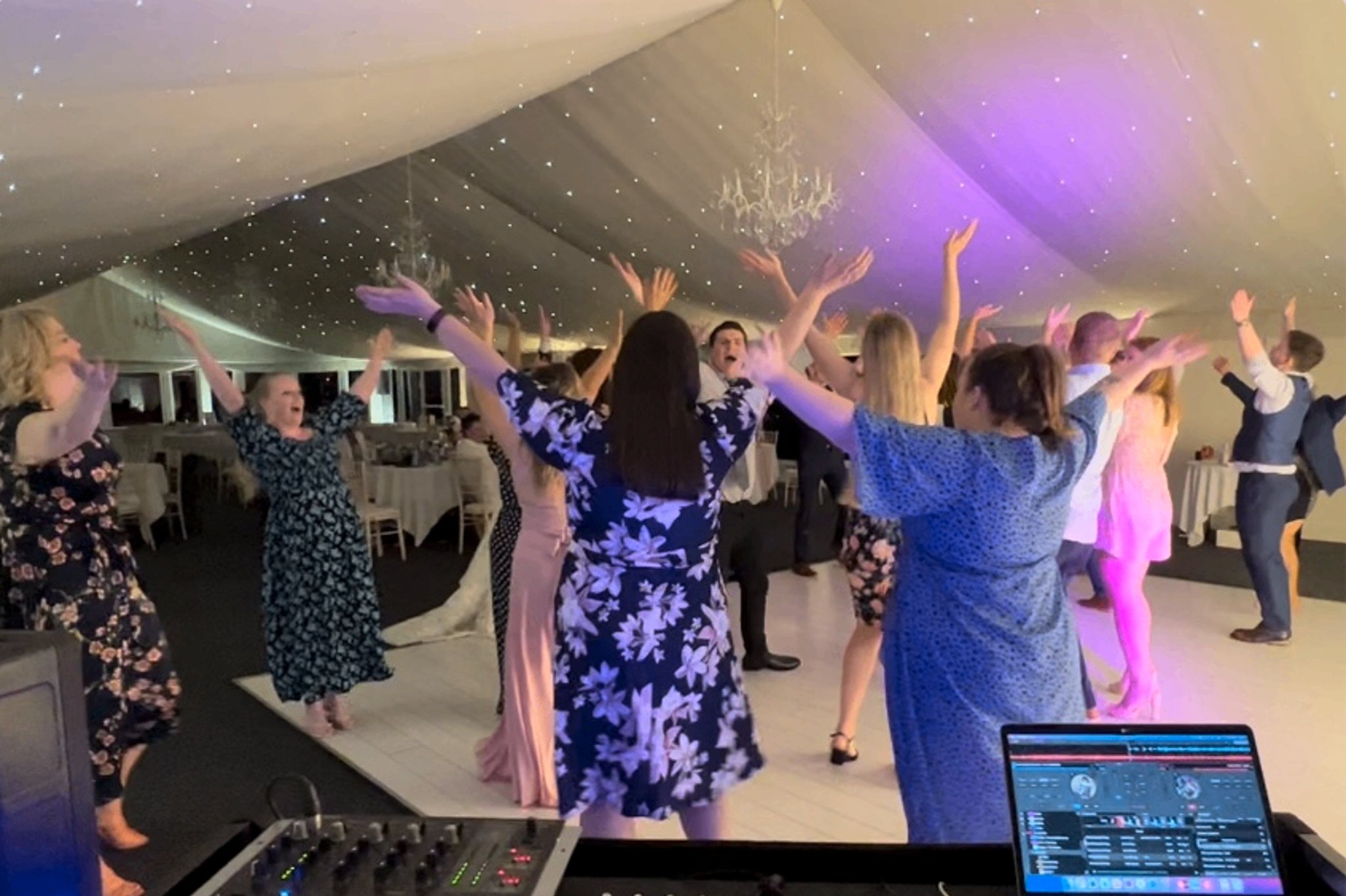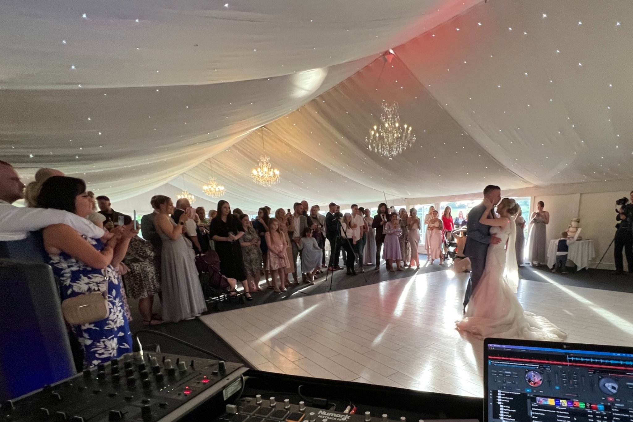 I first have a brief consultation to understand things such as the wedding date, location and timings, and I give an instant quote. To confirm, I take a 30% deposit to hold the date in my calendar, with the outstanding balance payable at any time up to the date of the event. I also have a bunch of optional extras (such as enhanced or premium lighting, LED DJ booth, cold spark machines, starlit dancefloor, moving head lights, mock fire/flame machines, haze machine, screen, etc) and a corresponding price list, so you can "build your own package" and decide exactly what you'd like. I then work with the couple and request a list of must-play songs for your big day. I look at this list and then instantly know the exact type of vibe you're going for, and build out a tailored playlist based on the songs you choose!