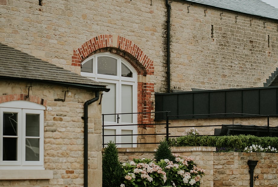 Our stone courtyard surrounded by the renovated barns and wedding function room is a unique social area. Everything is so close. You can go and change your shoes and still be a part of the wedding celebrations.
