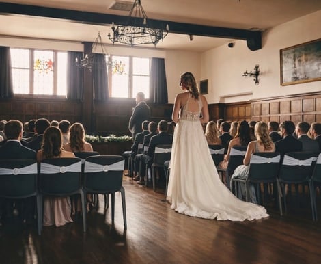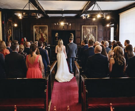 -The Court Room: Step into history with this 16th-century room, featuring stunning oak panelling and stained-glass windows. It’s perfect for an intimate ceremony, creating a warm and memorable atmosphere. -Room Capacity: 60 Guests