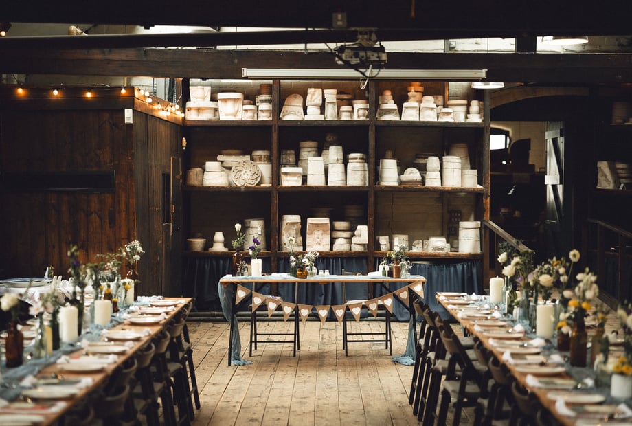 Middleport Pottery is the ideal wedding venue for couples who are seeking a flexible approach to wedding planning – meaning the only limit is your imagination. The venue hire allows couples exclusive access to all of the beautiful rooms the day before your wedding to decorate and the morning after your wedding to collect your personal items so there's no rushing at the end of the your wedding day. Our venue hire pricing is either low season (November to March) or high season (April to October). The maximum capacity for the largest room is 100 guests but across all 4 rooms we can accommodate 250 guests. The site is like steeping back in time and guests are left in awe when attending a wedding at Middleport Pottery. Our unique heritage site is licenced for civil ceremonies as well as offering you a wedding reception venue that oozes charm. Middleport Pottery is the only venue in the UK that has it's own Bottle kiln that is licensed to hold weddings. If you are interested in finding out more about getting married in the heart of the Potteries head over to our website to find out more and request a venue tour.