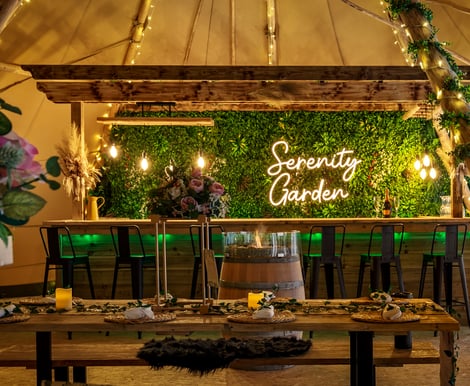But why stop at a day? At Serenity Garden, you can bring your friends, family and loved ones together for a weekday or weekend wedding event. Enjoy a luxurious stay in our picture-perfect cottages, glamping units and safari tents, toast marshmallows over open fires and enjoy a soak in a hot tub or outdoor copper bath. Let the children run free through mature woodland while you and your guests relax with views over the rolling hills.