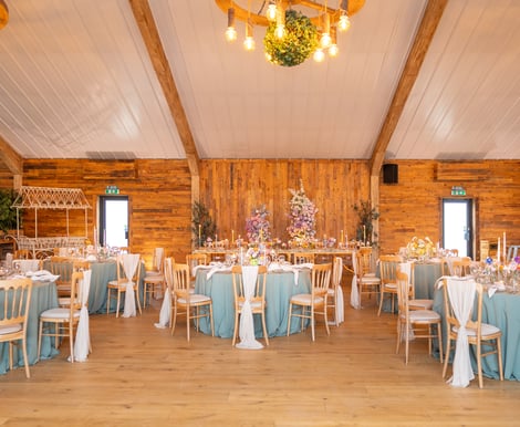 The elegant and rustic barn venue space allows the day to flow from the wedding breakfast seamlessly into the evening celebrations. Fully heated and air-conditioned, your guests will enjoy the day in total comfort, with a cosy mezzanine lounge area overlooking the dancefloor.
